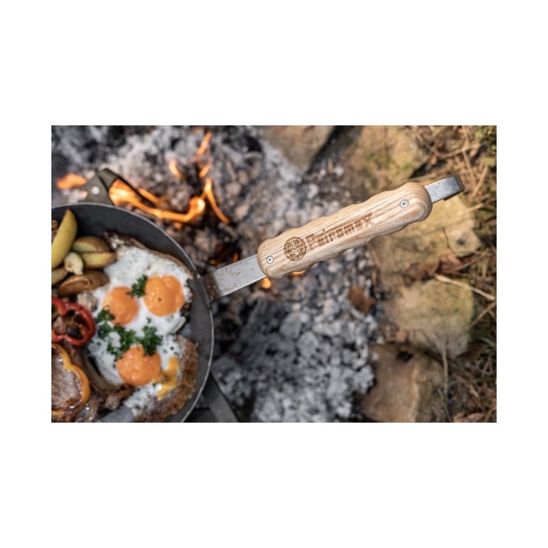 Ĺ i medinÄ— rankena tinka visĹł dydĹľiĹł Petromax kalto plieno keptuvÄ—ms.