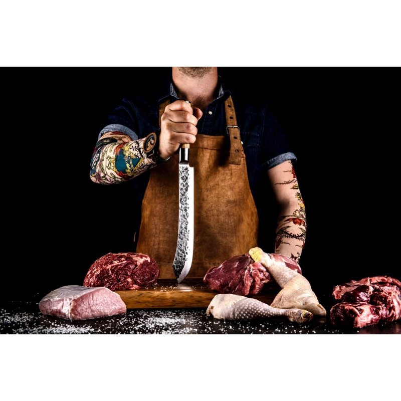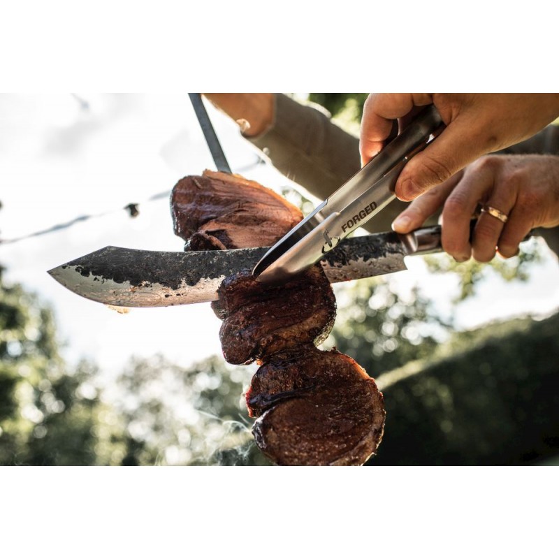 Peilis turi ypač ilgą ašmenį, tad leis lengvai pjauti ir didesnius mėsos gabalus. Ašmuo gale turi užlenkimą. Su šiuo peiliu galėsite lengvai pjauti tiesius mėsos gabalus. Forged alymdedžio peiliai yra pagaminti iš is japoniško 440 plieno ir turi 58 Rockwell kietumo lygį. Visi Forged peiliai yra rankų darbo, pateikti prabangioje dėžutėje.