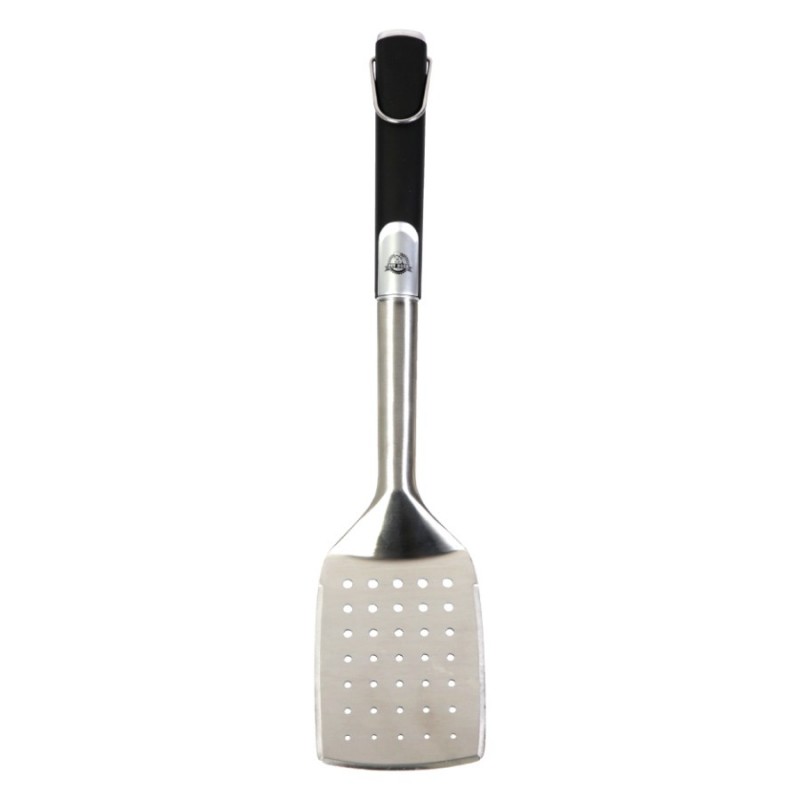 Tvirta konstrukcija užtikrina ilgaamžiškumą, o ergonomiška, karščiui atspari rankena suteikia saugų ir patogų naudojimą net intensyvaus kepimo metu. Integruota pakabinimo kilpa leidžia patogiai laikyti įrankį šalia grilio, kad jis visada būtų po ranka.