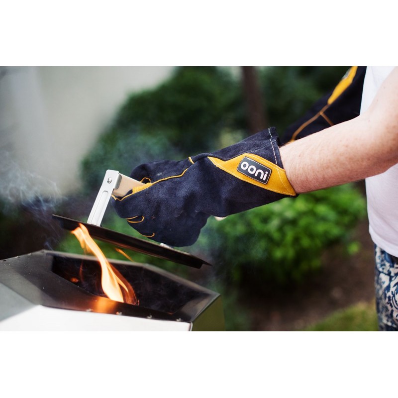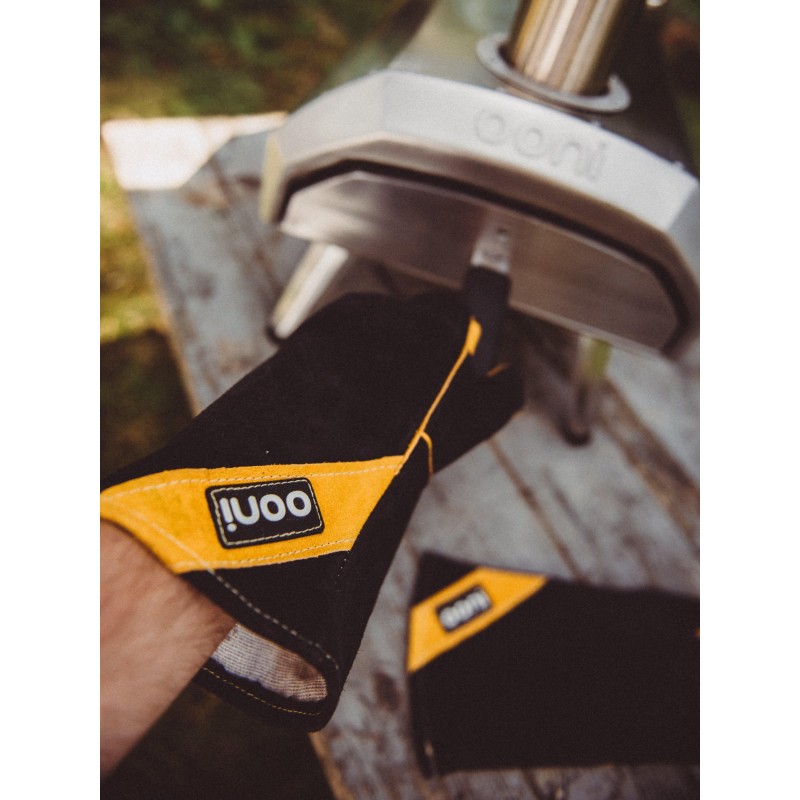 Ooni odinės pirštinės yra sukurtos apsaugoti rankas nuo aukštos temperatūros, naudojantis picos krosnelėmis ir kepsninėmis. Jos turi itin minkštą vidinį pamušalą ir tvirtą odinį išorinį sluoksnį, užtikrinantį puikią apsaugą nuo karščio, sertifikuotą kaip atsparią karščiui iki 500°C (950°F) iki 15 sekundžių. Ilgos rankovės suteikia papildomą apsaugą riešams ir dilbiams, todėl galite drąsiai tvarkyti karštus paviršius.