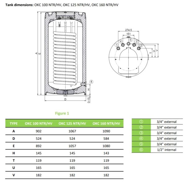 OKC 125NTR greitaeigiai pastatomi vandens šildytuvai 1,45m2