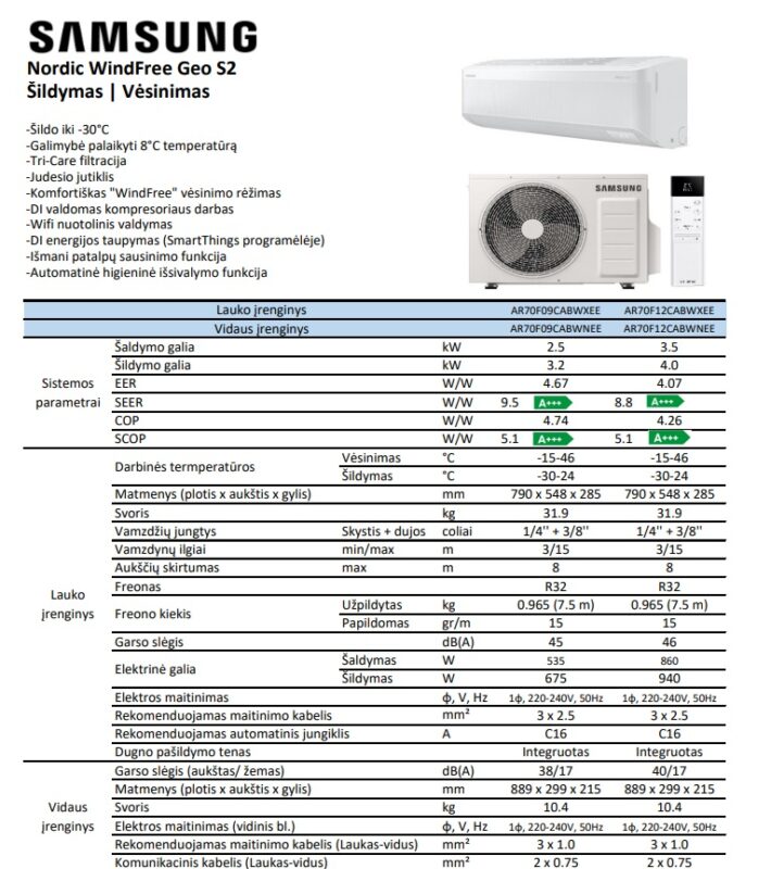 Oras-Oras Samsung Nordic GEO WindFree 3.5kW -30°C namuose, ant sienos