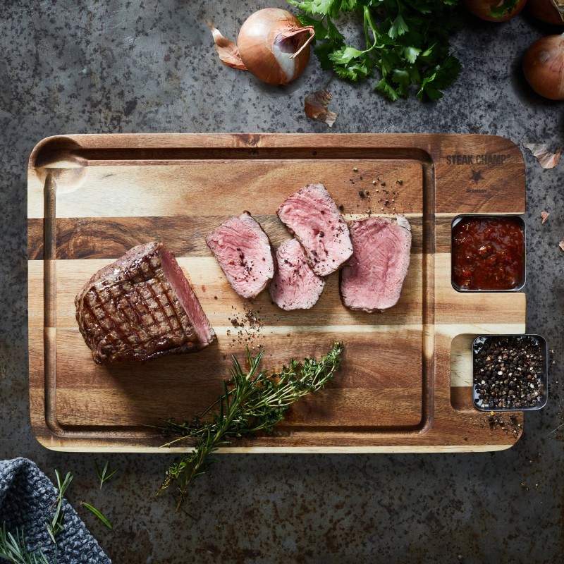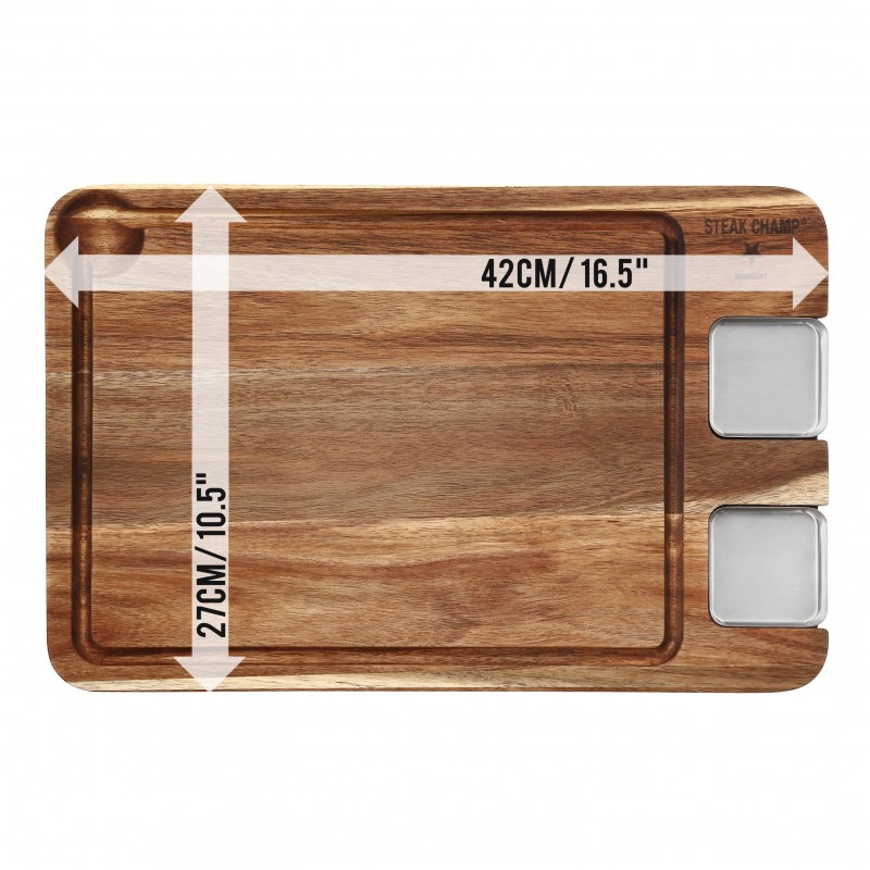 Būkite pirmas aprašęs “Pjaustymo lenta Steak Champ su padažo indeliais”
