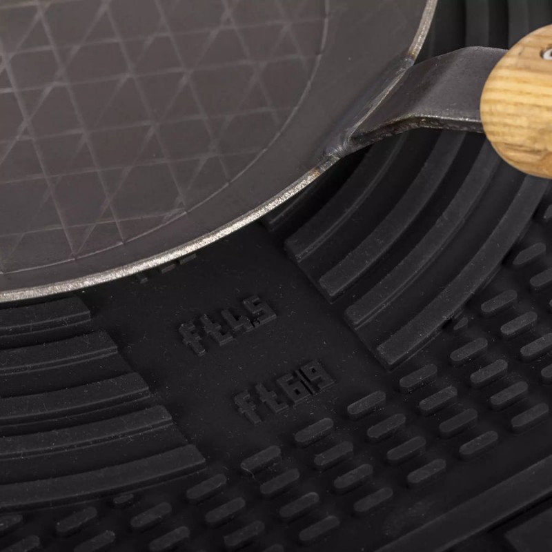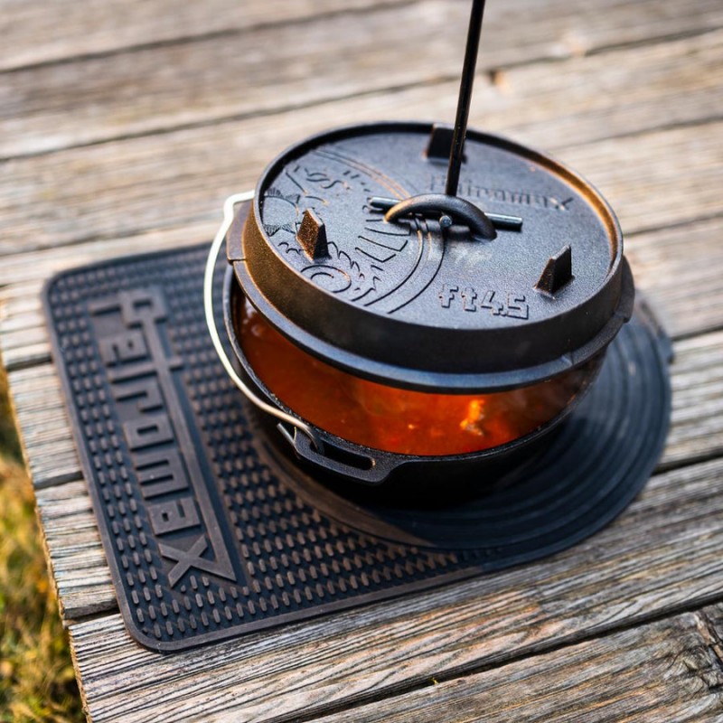 • Po ketaus puodu: kilimėlis pakankamai tvirtas ir stabilus, tinka Petromax Feuertopf iki FT9 dydžio (su kojelėmis ir be).