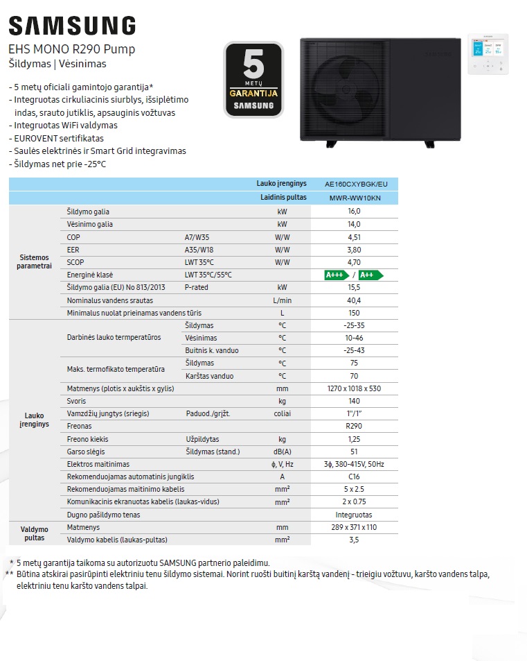 Šildymo galia +2 / W35 / COP 15,5 kW / 3,3