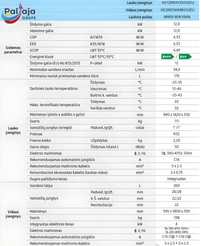 Šilumos siurblys Samsung Monobloc 12kW 260L (R32)