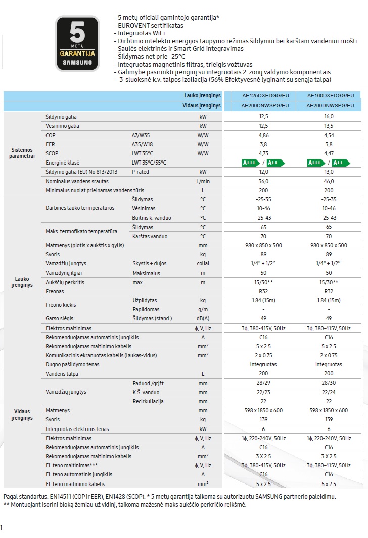 Lauko įrenginio garso slėgis (šildymas, stand.), dB(A) | 49 |