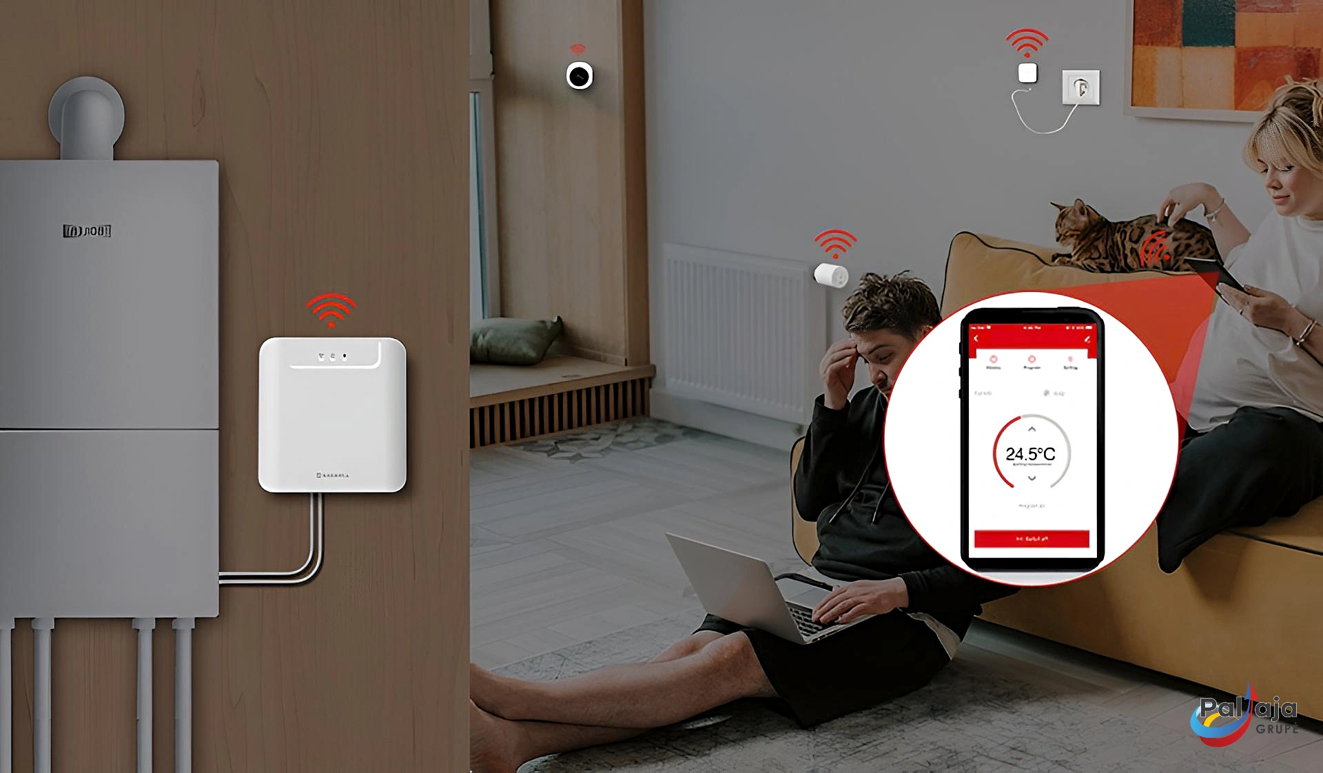 Nuotoliniam valdymui per išmanųjį telefoną ar planšetę reikalingas ZigBee ryšio tiltas. Naudojant jį, šildymo sistema gali būti valdoma per mobiliąją programėlę, stebimi temperatūros pokyčiai ir koreguojami nustatymai realiuoju laiku.