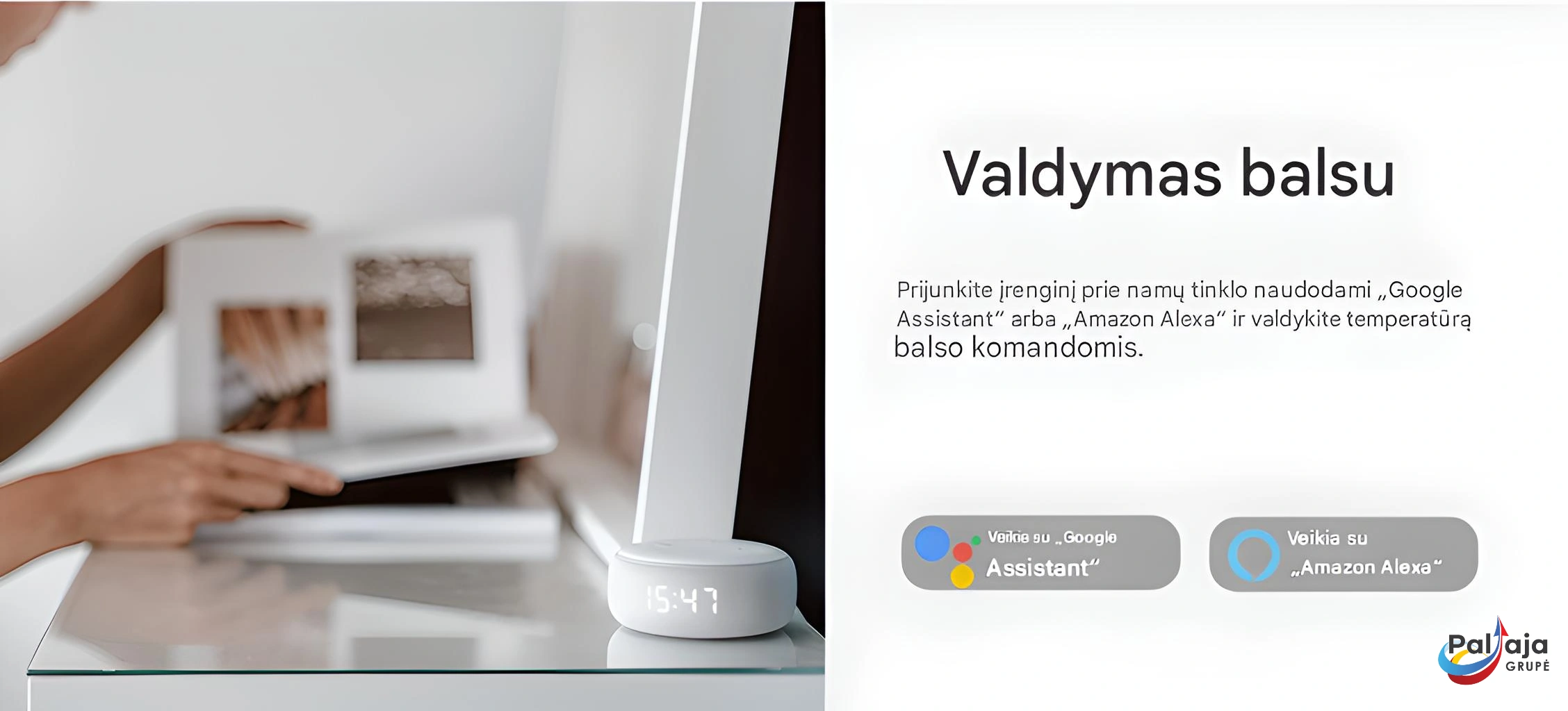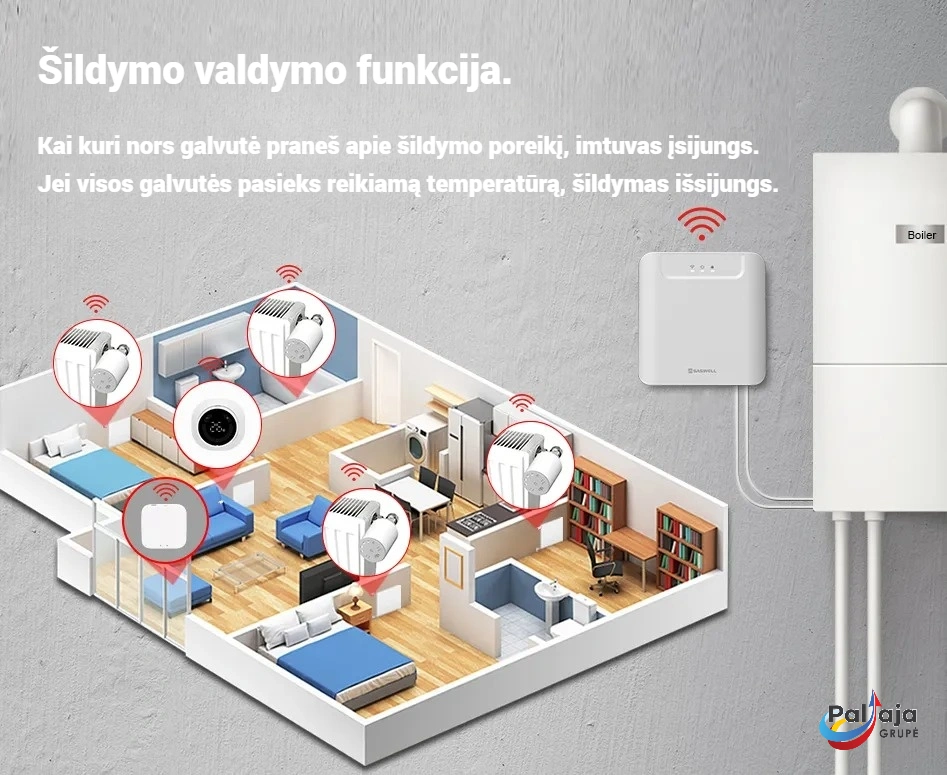 - Galima naudoti tiek su radiatoriniu, tiek su grindiniu šildymu (jei sistema palaiko)