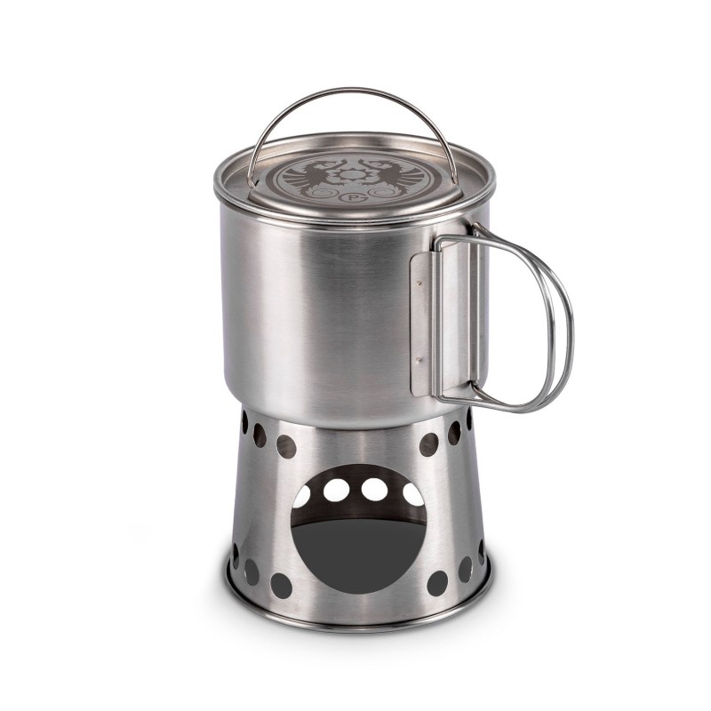 Petromax universalų puodelį mėgstamiausiam gėrimui gerti arba kaip puodą maistui ruošti. Tai reiškia, kad esate pasirengę savo nuotykiams gamtoje ir nereikia vežtis papildomo bagažo. Su tokiu puodeliu lengva įrengti maisto gaminimo vietą, apsaugotą nuo vėjo ir drėgmės. Talpykloje pakanka vietos nedidelėms malkoms, anglims ar bet kokiam kitam įprastam kurui. Jį galima sudėti ir net pripildyti kitais daiktais, pavyzdžiui, malkomis ar vandens buteliuku, kad sutaupytumėte vietos kuprinėje.