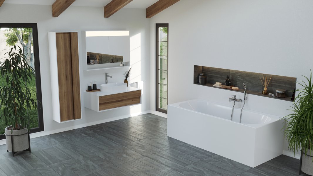 Norėdami turėti vieningą sprendimą ir dizaino harmoniją vonios kambaryje, „Step“ veidrodžio spintelę rekomenduojame derinti su kitais „Step“ gaminiais (praustuvo spintele „SD 1000 Step“ ir aukšta „SB 430 Step“ spintele).