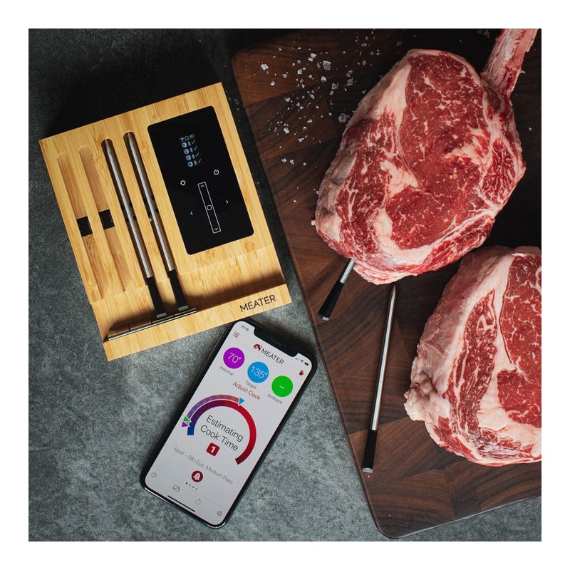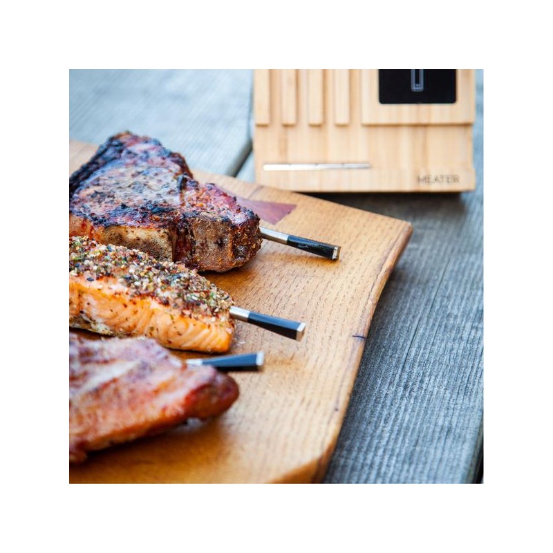 Su „MEATER Block“ vienu metu galite stebėti keturis skirtingus mėsos gabalus. Įrenginį, taip pat, galima naudoti be mobiliosios progrėlės, reguliatoriaus pagalba. Termometrą galite prijungti per „Wi-Fi“ ryšį arba „Bluetooth“. Kiekviename matuoklyje yra įmontuoti du šilumos jutikliai, leidžiantys paruošti tobulą mėsą. Universalų termometrą galite naudoti orkaitėje, grilyje ar rūkykloje.