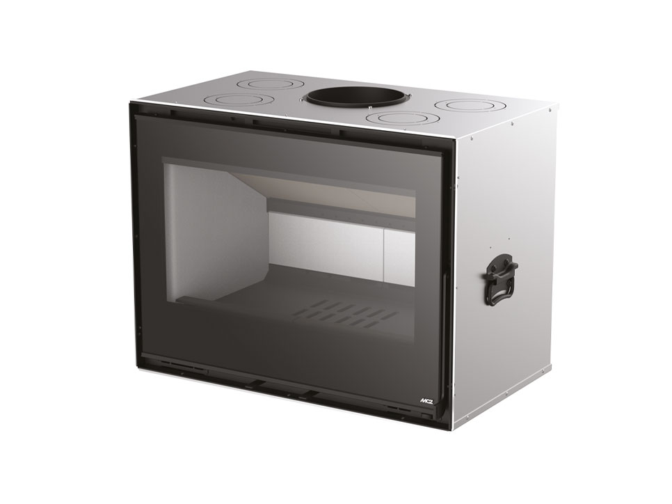 - Su MCZ QBox židinio įdėklu montavimas tampa dar paprastesnis, nes naudojamas 150 mm dūmtraukio vamzdis (200 mm QBox 100 modeliui), kuris pritaikomas įvairioms situacijoms. Durys su rankena dešinėje pusėje kaip standartas, bet, jei reikia, jas galima apversti po montavimo.